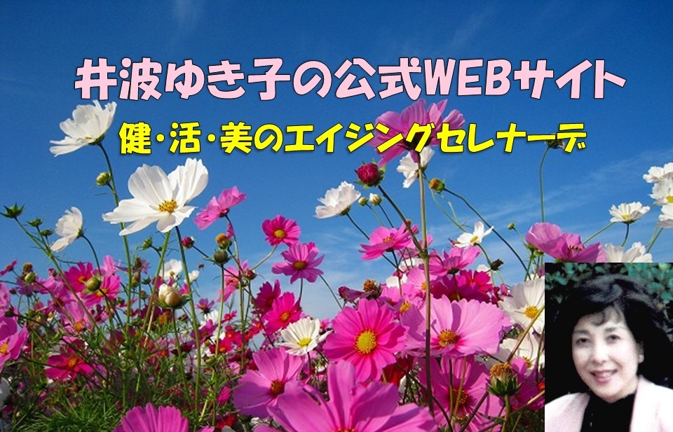 井波ゆき子の公式WEBサイトにようこそ。このサイトでは、私が提唱して実践している『健・活・美のエイジングセレナーデ』についてご紹介しています。各項目を詳しくお知りになりたい場合は各アイコン画面をクリックしてください。