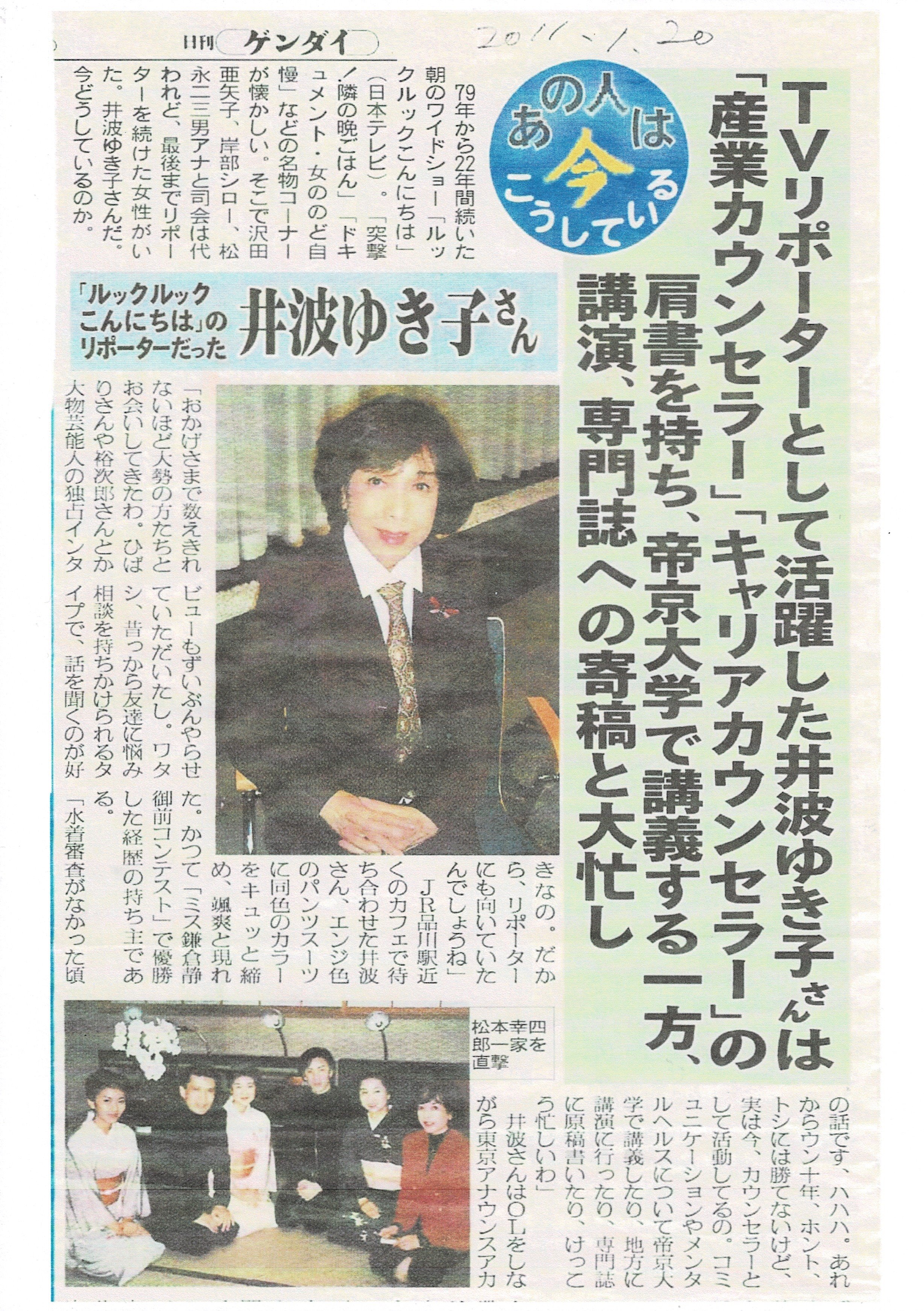 情報番組では(竹村健一世相講談)レギュラーアシスタント、モーニングショー(ルック ルックこんにちは)では22年間リポーターとしてお茶の間に親しまれる