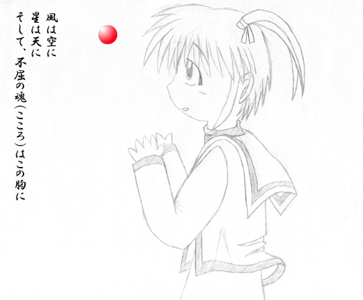 『とらいあんぐるハート1・2・3 DVD EDITION』発売記念! というわけで、『とらいあんぐるハート3 リリカルおもちゃ箱』より、 主役の高町なのはです。 個人的にはとらハシリーズのキャラの中では3番目にお気に入り。 「やっぱり○リじゃん」とかいう突っ込みは却下です。 でもこれって、描き始めた当初はとらハ3ビジュアルファンブックの 発売記念のつもりだったんだけどなぁ…。 相変わらずほったらかし炸裂なすうちんであった。