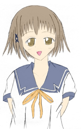 ONE2より麻生久遠です。 左右対称(もどき)に描く練習だったんだが、どうもいまいち。 …っていうか全然似てね〜! あの活発さを表現できない自分の画力が悲しい…。(涙) ONE2の制服は冬服よりも夏服の方が好きです。 冬服はなんかやたらゴテゴテしてるんだよね。 原画の片桐氏の趣味なんだろーけど。