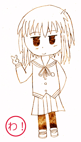 デフォルメしようとしたら全体のバランスが酷いことに…。 えう〜、やっぱまずは原画力を上げないといかんなぁ。