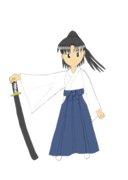 剣術少女です。 どちらかというと洋服好きな私ですが、袴なんかも大好きです。 巫女装束とかね。 あとは日本刀。 そのうち鞘から解き放った状態のものも描きたいです。 …ちなみに本来はこの絵に背景写真が付くはずだったんですが、 HDD死亡事故により件の写真データが電子の海に消えました。(涙) もしサルベージできたら付けることにします。
