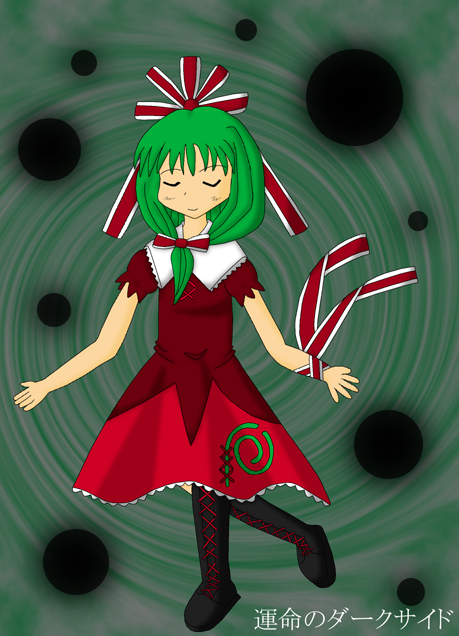 ひな祭り! ってことで、東方風神録より鍵山雛です。 人知れずみんなの厄を引き受けて、収集してるところなんかが健気で良いです。 服装が原作と若干異なってるのは仕様(笑)です。 まぁ2次創作なのでこれぐらいはいいっしょ。 背景は本当は弾幕を再現したかったんだけど、 私の技術力では到底無理だったので、 なるべく厄くなるように試行錯誤してみました。 ちなみに今回の絵を描いてみて、雛のスカートについてる模様が ”厄”の字になってることに初めて気付いたよ…。