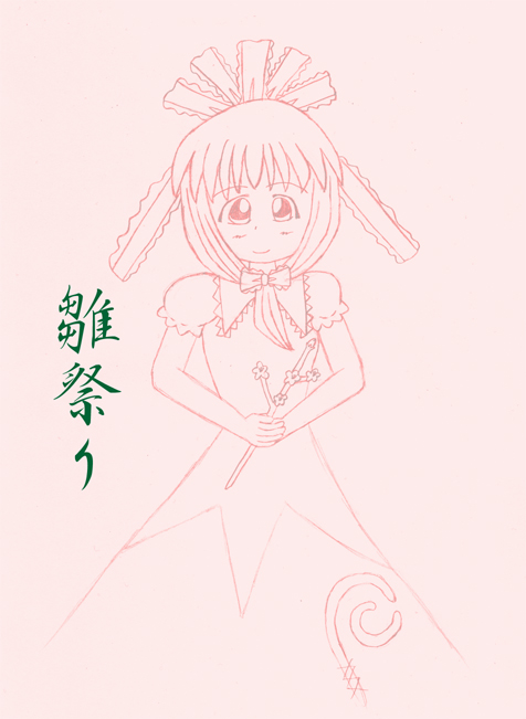 雛祭りにちなんで東方風神録より鍵山雛です。 3月3日に「雛祭りだから雛描こう!」と思いたって、 下書きまでしたところで力尽きて、 結局その後1ヶ月放置してたのをようやく清書したのがこれ。 手にもってるのは桃の節句にちなんで桃の花の枝…のつもり。