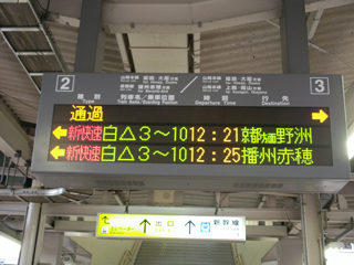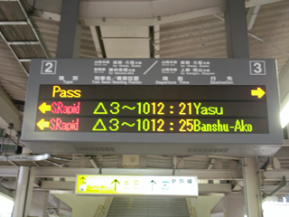 JR相生駅(兵庫県)の電光掲示板。