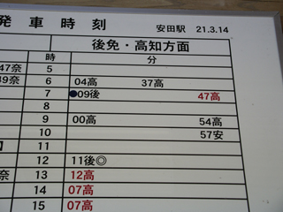 安田駅の時刻表。