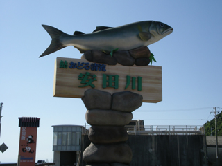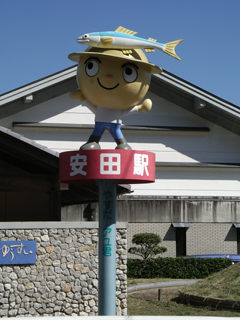 安田駅のマスコット、安田アユ君。