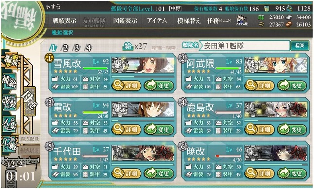 あとは1-5-Aに反復出撃させて、時津風を改にしました。
