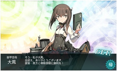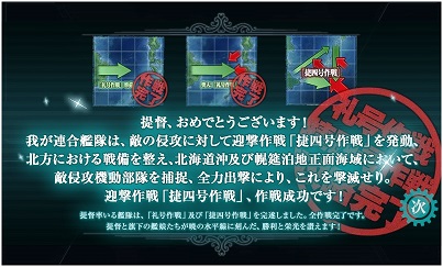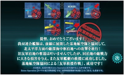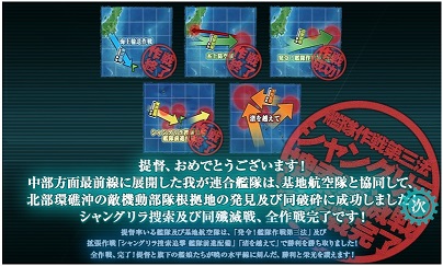 航戦1、重巡1、軽空2、雷巡1、水母1で行って、今度は楽々S勝利×3で任務達成。