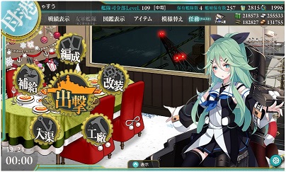 今日は最低限のデイリー任務のあとは、入渠&遠征デーです。