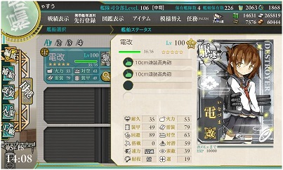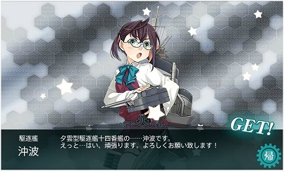 帰宅後、6-4に1回出撃するも、Cマス大破撤退。