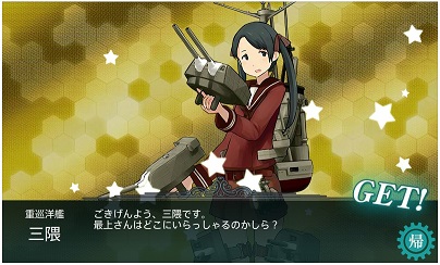 いつもの上3戦ルートで、2回大破撤退を強いられるも、3回目で任務達成。