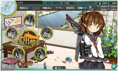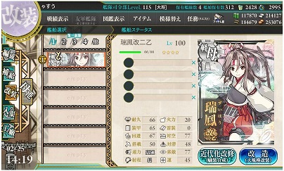 そのため、第1艦隊を武蔵改二、伊勢改二、初月改、Com.改、瑞鳳改二、千代田改二にチェンジ。