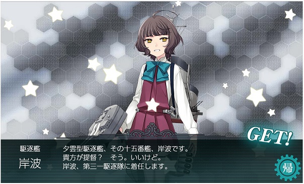 軽巡1駆逐5で出撃し、羅針盤に振り回されたものの、戦闘は特に問題なく達成。