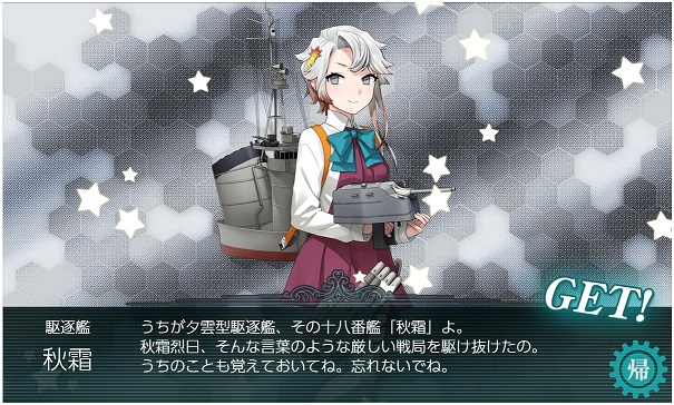沼りまくったE-5のゲージを割ってくれた初霜が受賞です。