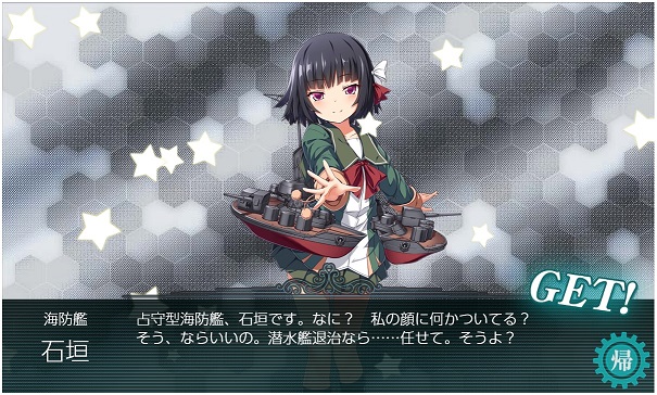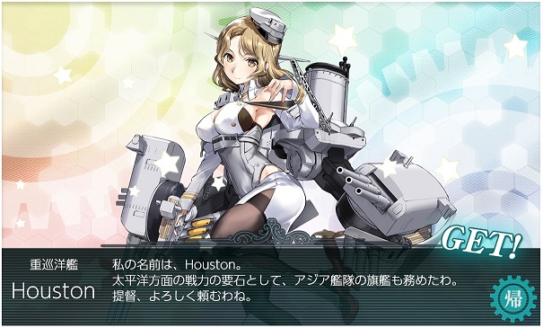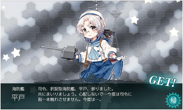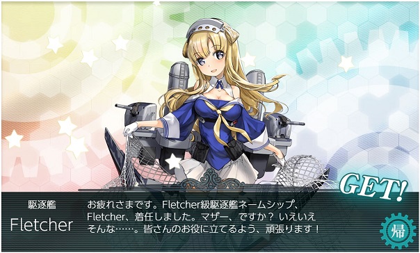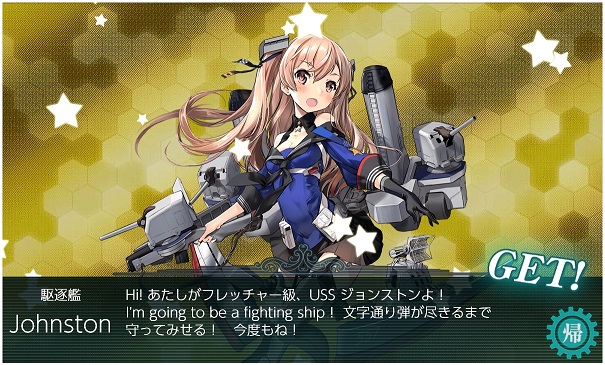 そんな掘りの成果は、出撃14回でボスA勝利12回、C敗北1回、大破撤退1回で…Johnstonドロップ!!