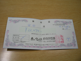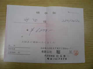 <安田じゃない凡氏が安田を騙って入手した領収書>