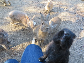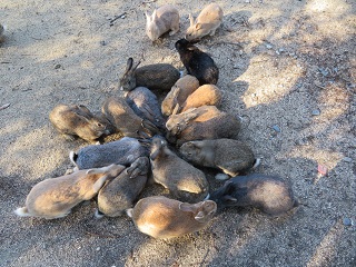 相変わらず食欲旺盛な、大久野島のウサギたち。