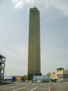 宇多津(香川県)が誇る金色の尖塔。 四国の栄華を象徴するかのような豪奢な造りが空に映えます。(爆) 金色のガラスは、内側から見ると何故か透明…。