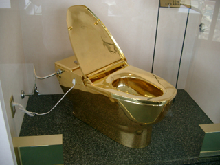 同じくタワー内に展示されてる純金製便器。 ちゃんと水と電気が繋がってるところが素敵です。 ちなみに重さは26kg。