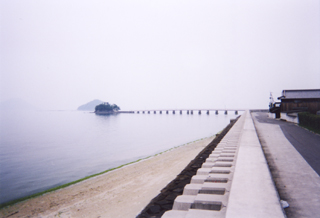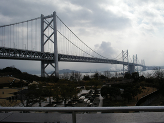 与島サービスエリアから見た瀬戸大橋(の一部)。