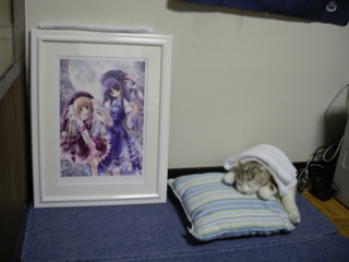 抱き枕と一緒にいるのは妖夢の半霊。(笑)