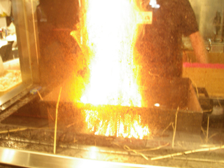 カツオのたたきを藁焼きしているところ。
