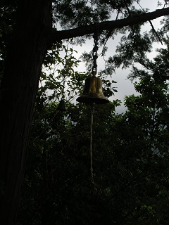 逆光で見づらいが、鐘が大小二つ吊り下げられている。