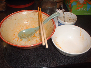 卓上辣油もほらこの通り。 (足りなくて隣の卓のも使いました)